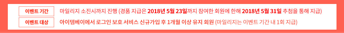 | 2018³â 4¿ù 2ÀÏ~ 5¿ù 1ÀÏ ±â°£³» °¡ÀԽà | 2018³â 5¿ù 30ÀÏ Áö±Þ | ¿¹) 2018³â 4¿ù 2ÀÏ ¼ºñ½º °¡ÀÔÀÚÀÇ °æ¿ì 5¿ù 1ÀϱîÁö ¼ºñ½º À¯Áö ÇÊ¿ä (1°³¿ù À¯Áö Á¶°Ç) | 2°³¿ù À¯Áö ½Ã Ãâ±Ý ¸¶Àϸ®Áö 30¸¸¿ø (2ȸ Ãß÷ ÁøÇà, 1ȸÂ÷ ´ç 1¸í¾¿ Áö±Þ) | 2018³â 2¿ù 2ÀÏ~ 4¿ù 1ÀÏ ±â°£³» °¡ÀÔ ½Ã | 2018³â 4¿ù 30ÀÏ Áö±Þ(1ȸÂ÷) | ¿¹) 2018³â 2¿ù 2ÀÏ ¼ºñ½º °¡ÀÔÀÚÀÇ °æ¿ì 4¿ù 1ÀϱîÁö ¼ºñ½º À¯Áö ÇÊ¿ä (2°³¿ù À¯Áö Á¶°Ç) |